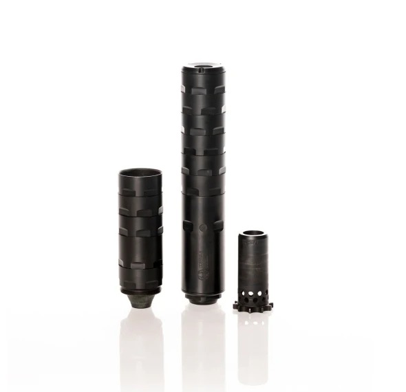 The Dead Air Odessa 9 is an extremely modular 9mm pistol suppressor rated 22LR all the way to 9mm. In its longest configuration, the Odessa 9 weighs 7.4 ounces (without the piston and spring) and has a 7.75-inch length. There are 9 total baffles in this Dead Air suppressor that can be disassembled, meaning you get 10 configurable lengths that you can choose from based on your needs. At its shortest configuration, the Dead Air Odessa 9 is a mind blowing 2.75 inches.