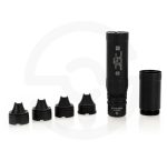 One of the best modular 9mm suppressors, the Lunar 9 QD in its short configuration is an incredible 5.29 inches in length and weighs just 11 ounces. The sound suppression specs of the Gemtech Lunar 9 QD are even more impressive in full configuration. This ultra-quiet suppressor is just 7.61 inches long and weighs only 14 ounces. In either configuration, this lightweight 9mm suppressor employs a 17-4 stainless steel blast baffle and 3-Lug QD mount with Type III hard-coat anodized 7075 baffles and tubes.