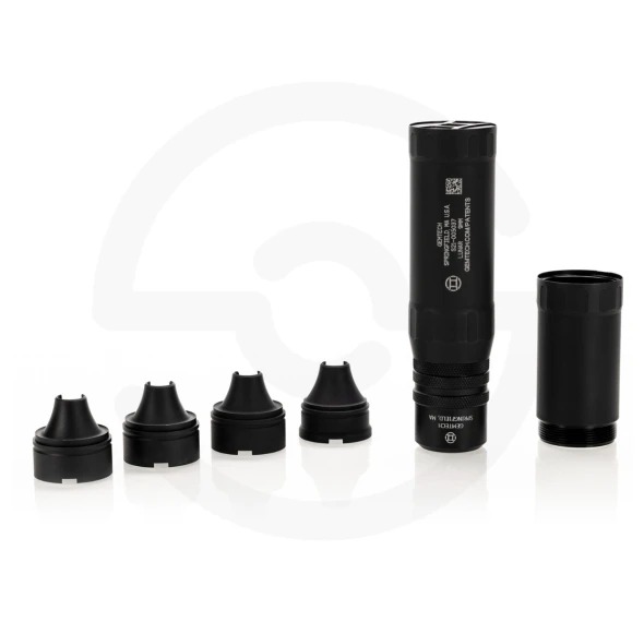 The Gemtech Lunar 9 suppressor features an innovative baffle design that allows it to be converted from a longer, 7″ suppressor to a shorter 4.7″ suppressor.