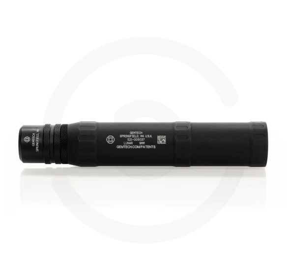 One of the best modular 9mm suppressors, the Lunar 9 QD in its short configuration is an incredible 5.29 inches in length and weighs just 11 ounces. The sound suppression specs of the Gemtech Lunar 9 QD are even more impressive in full configuration. This ultra-quiet suppressor is just 7.61 inches long and weighs only 14 ounces. In either configuration, this lightweight 9mm suppressor employs a 17-4 stainless steel blast baffle and 3-Lug QD mount with Type III hard-coat anodized 7075 baffles and tubes.