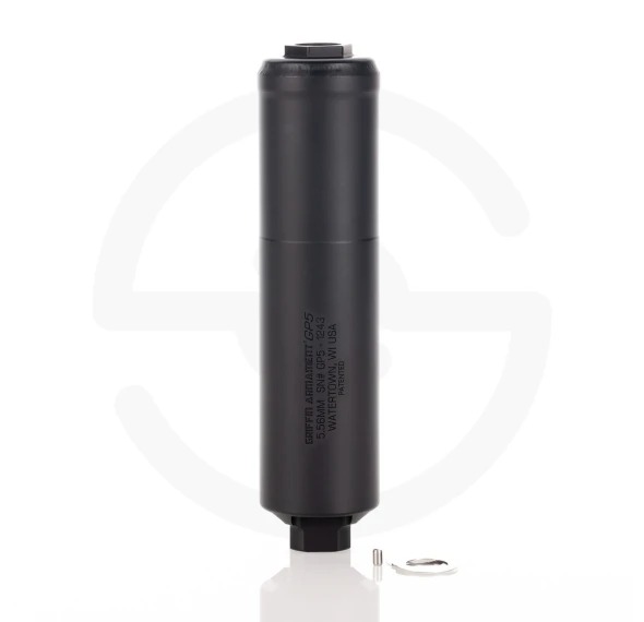 Manufacturing out of Wisconsin, Griffin Armament was started by two military brothers with the sole intention of preserving gun enthusiasts’ hearing. By utilizing computer-based designs and highly-tested products to suppress firearms of all calibers, this is an up-and-coming crew. Their goal is commendable, as is their aim of passing savings to suppressor users. The effective and economical GP5 silencer continues this admirable practice.