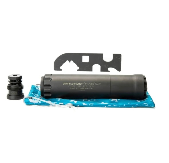 The Wisconsin based company has gained notoriety for their comprehensive designs and top-tier testing to create silencers in each classification. Griffin Armament was formed in 2005 by two combat vet brothers looking to preserve firearm enthusiast’s hearing, and the Paladin 5’s sound reduction continues in this commendable pursuit. This addition to Griffin’s suppressor family maintains the precedent of their already set high standards and is the perfect addition to any household.