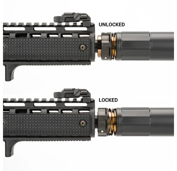 - Dual-locking mechanism prevents loosening, even during high-volume firing.
