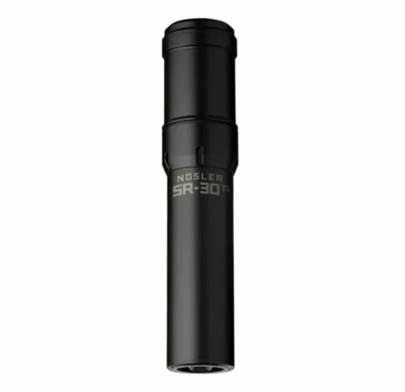 With it’s lightweight construction and noise reduction, the Nosler SR-30 ALTI is an ideal suppressor when weight is a factor. The blast chamber and first baffle are made from titanium while the rest of the suppressor is made of aluminum. The serialized blast chamber allows for rapid repairs from Nosler in the event of a baffle strike. This highly versatile can comes with the apporpriate muzzle adapter (5/8X24 TPI) and is ready for use out of the box!