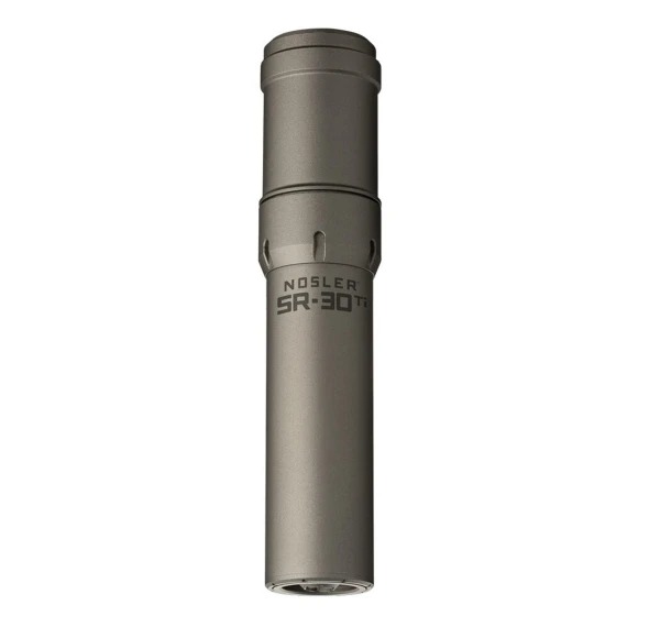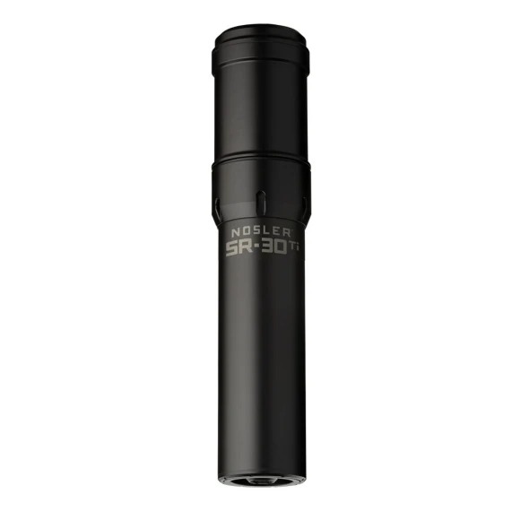 The Nosler SR-30 TI is incredibly strong and lightweight thanks to the all-titanium construction. Made from 100% Titanium, this silencer is full auto rated! The serialized blast chamber allows for rapid repairs from Nosler in the event of a baffle strike. This highly versatile can comes with the apporpriate muzzle adapter (5/8X24 TPI) and is ready for use out of the box!