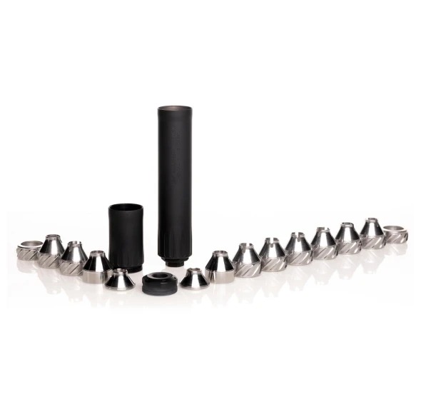 The OSS RAD 45 is a modular pistol suppressor that is lightweight, accurate, and repeatable. In its full configuration, the RAD 45 is 8.6 inches long and 10.3 ounces. Its short configuration is only 6.4 inches long and it weighs a mere 7.6 ounces. Constructed of titanium, stainless steel, and aluminium, this OSS suppressor is both durable and incredibly lightweight, giving you the best of both worlds.
