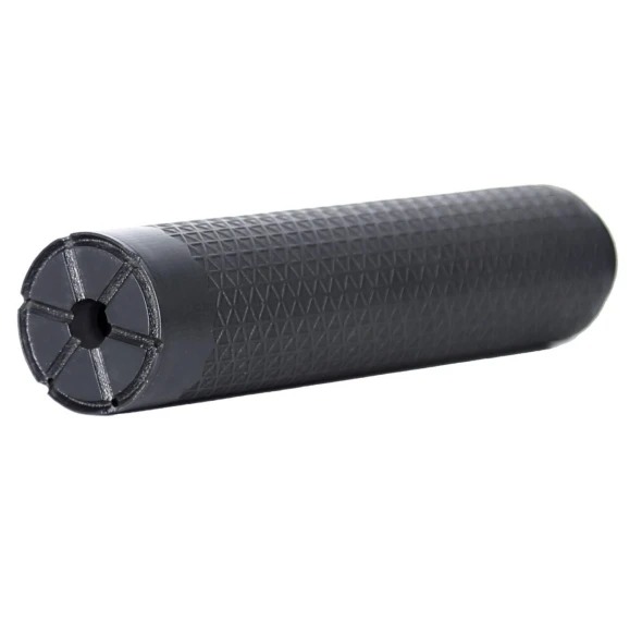 7.62 caliber, 3D printed Titanium, taper mount, zero modification to the host weapon, Semi-Auto Fire only, Forward Venting Breathable Technology for pressure stabilization and decreased felt blowback and back pressure to the host weapon, Salt Air Resistant, Monolithic, implosion resistant design. Proprietary I/R non- reflective coating.