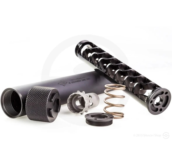 The Massachusetts-centered YHM strives to bring quality firearm products to the public at a great value. For this line of Sidewinder suppressors, they engaged an innovative, high-efficiency monocore baffle constructed from sturdy 7075-T6 aluminum (hard-coat anodized). Moreover, the outer tube utilizes durable 6061-T6 aluminum (also hard-coat anodized). These resilient materials offer high-strength and longevity in a lightweight package (about 10 ounces). The Sidewinder’s remaining components are formed with heat-treated 17-4 stainless steel, which is extremely resistant to corrosion and will not breakdown in extreme temperatures.