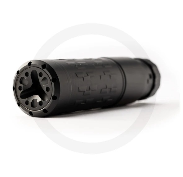 This suppressor stands out for its rugged build. It uses a 3D-printed Inconel 625 core that is fully welded to 17-4 stainless steel front and rear modules. This construction method creates an incredibly strong suppressor that handles harsh conditions, high heat, and long firing cycles with ease. The patented Hoplon Blast Baffle helps deflect debris and pressure to extend service life, especially during full-auto sessions or SBR setups.