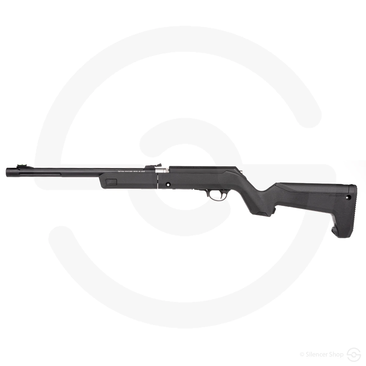 Please note that the Owyhee is not compatible with 10/22 style trigger packs (the safety bar is in a different location) nor 10/22 style barrels like the TSS integrally suppressed barrel (the notch for the extractor is in a different location). The only cross compatibility between this and a 10/22 are the stock and magazines.